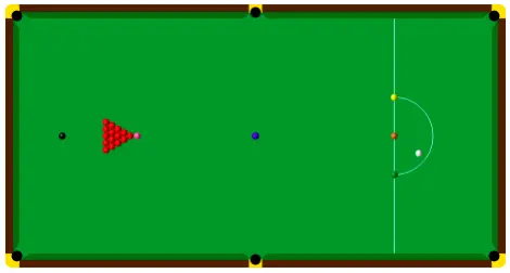 Aan de bovenkant van de tafel bevindt zich een dwarslijn (baulk line) met daarop een halve cirkel (de D). Vanaf de onderkant van de tafel gezien wordt links op de kruising tussen de lijn en de halve cirkel de gele bal gelegd, rechts de groene, en in het midden de bruine.
